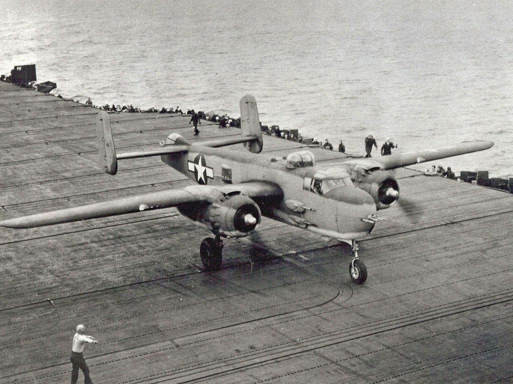 On April 18th, 1942, a total of 16 B-25s launched from the naval air carrier the USS Hornet at about 650 miles from the Japanese coast.