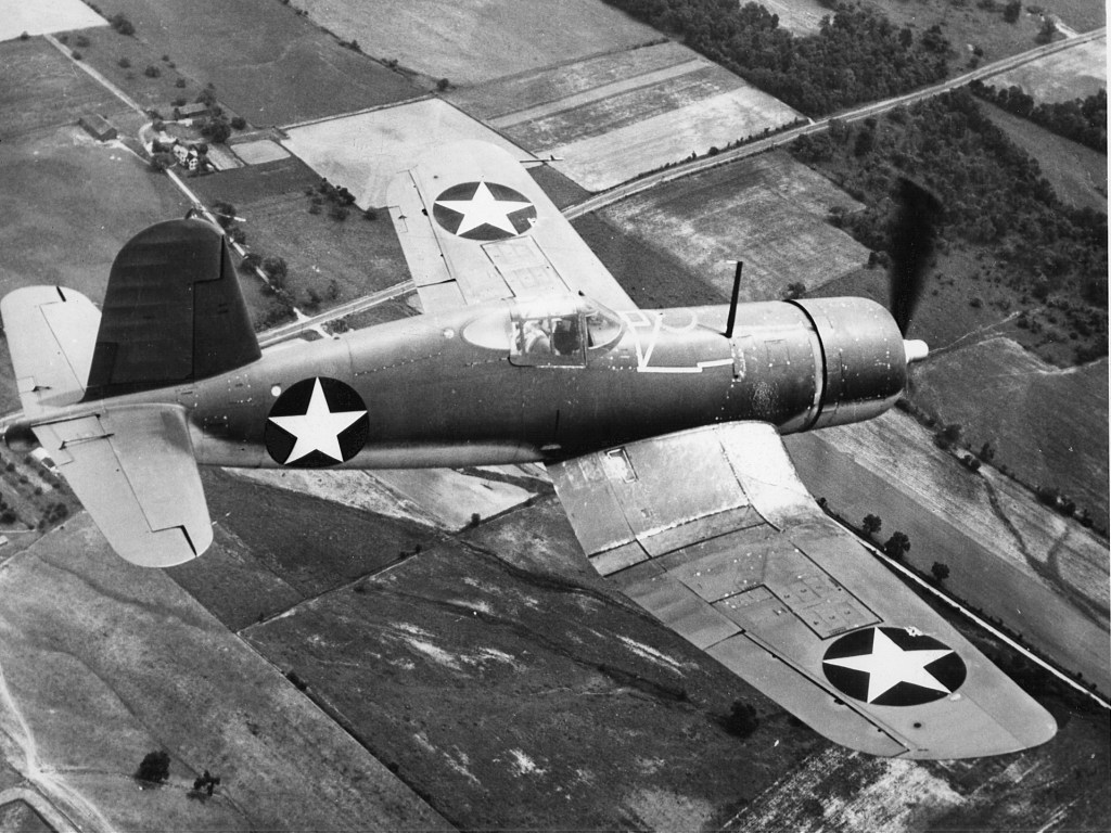 F4U-1 – The first production variant of the experimental XF4U-1 (a Corsair prototype), a 2,000-hp Pratt & Whitney R-2800-8 engine with 6 .50-caliber Browning machine guns in the wings. Also had “birdcage” canopy and low pilot seat. 2,469 produced, also known as Brewster’s F3A-1 and F3A-1D (and Goodyear’s FG-1 and FG-1D). The first service deliveries of this type were in July 1942.