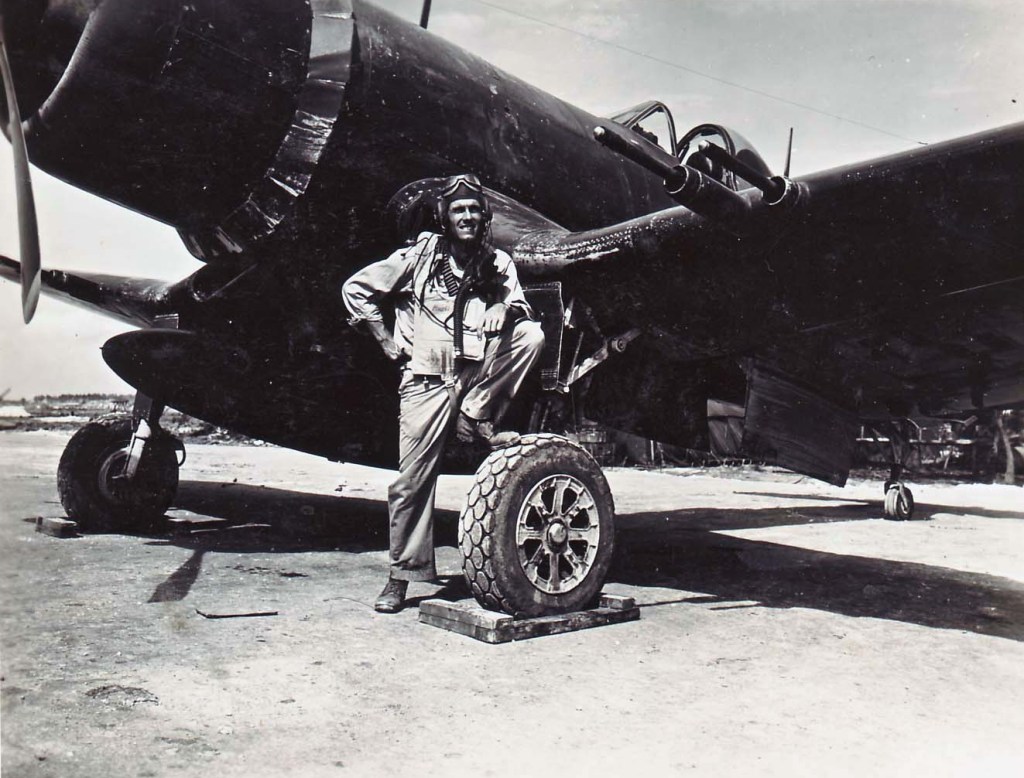 On August 15th 1943, Marine F4U units (VMF-123 and 124) assisted in the Allied landing at Vella Lavella. Marine Corps Second Lieutenant Kenneth A. Walsh of VMF-124 downed three Japanese planes that day – one Zero and two Aichi D3A1 “Val” dive bombers.