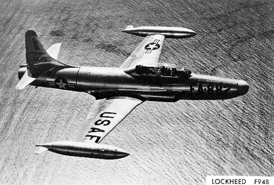 F-94 Starfire – An interceptor-type plane that was based on the T-33 Shooting Star, equipped with an afterburner, 855 instances were built. The F-94 was utilized by the USAF worldwide, mostly in Air Command units outside combat missions. The Starfire was largely taken out of USAF service by the late 1950s.