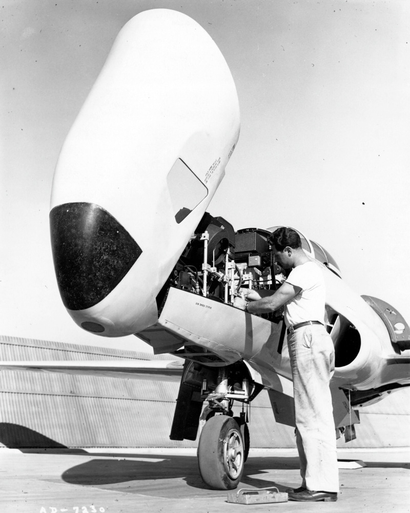 The original prototype used a 2,700 pound-thrust, British-produced de Havilland Halford H1-B “Goblin” engine. Use of the Goblin engine, however, would not last as engines from Britain would be increasingly harder to acquire in the United States.