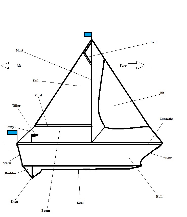 Gaff – On non-stay-positioned sails, the gaff is a spar that that can increase/decrease the head (size) of a sail.